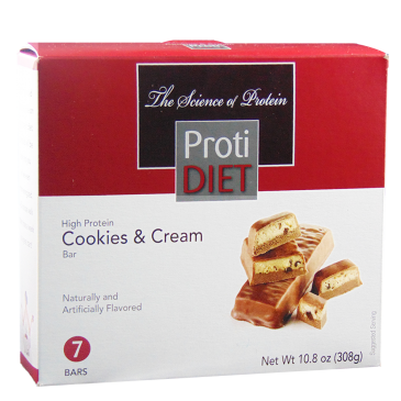 The ProtiDiet Cookies & Cream Protein Bar is a delicious bar that packs 15 grams of protein with only 160 calories.  Great mid-morning or afternoon snack with a cup of coffee or a glass of milk.
