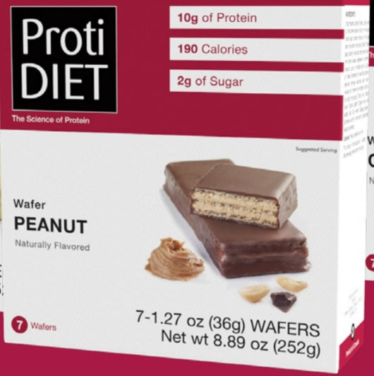 The ProtiDiet Peanut Wafer Bar is a quick, delicious fill-me-up that is sure to satisfy any sweet tooth! These great tasting wafers combine creamy peanut frosting and light crispness. Our richest offering at only 190 calories per serving and 10 grams of protein. The perfect snack for anyone on a weight loss program or just maintaining a healthy lifestyle